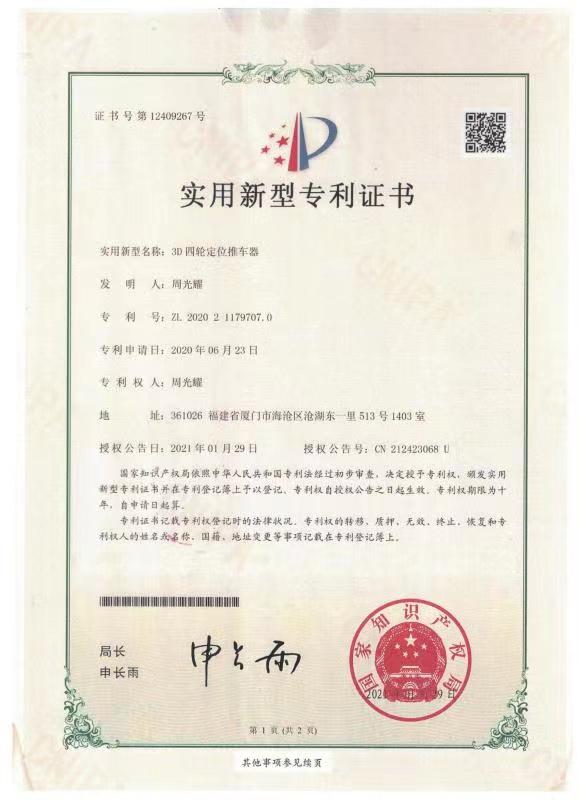 3D四輪定位省力推車器專利